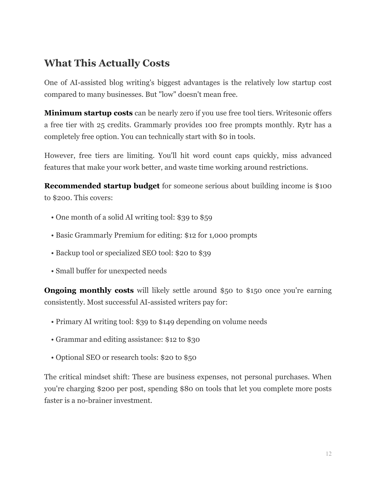 Launch a blog writing service using AI tools. Covers client acquisition, prompt engineering for quality content, editing workflows, pricing strategies, and the delivery system that keeps clients coming back.