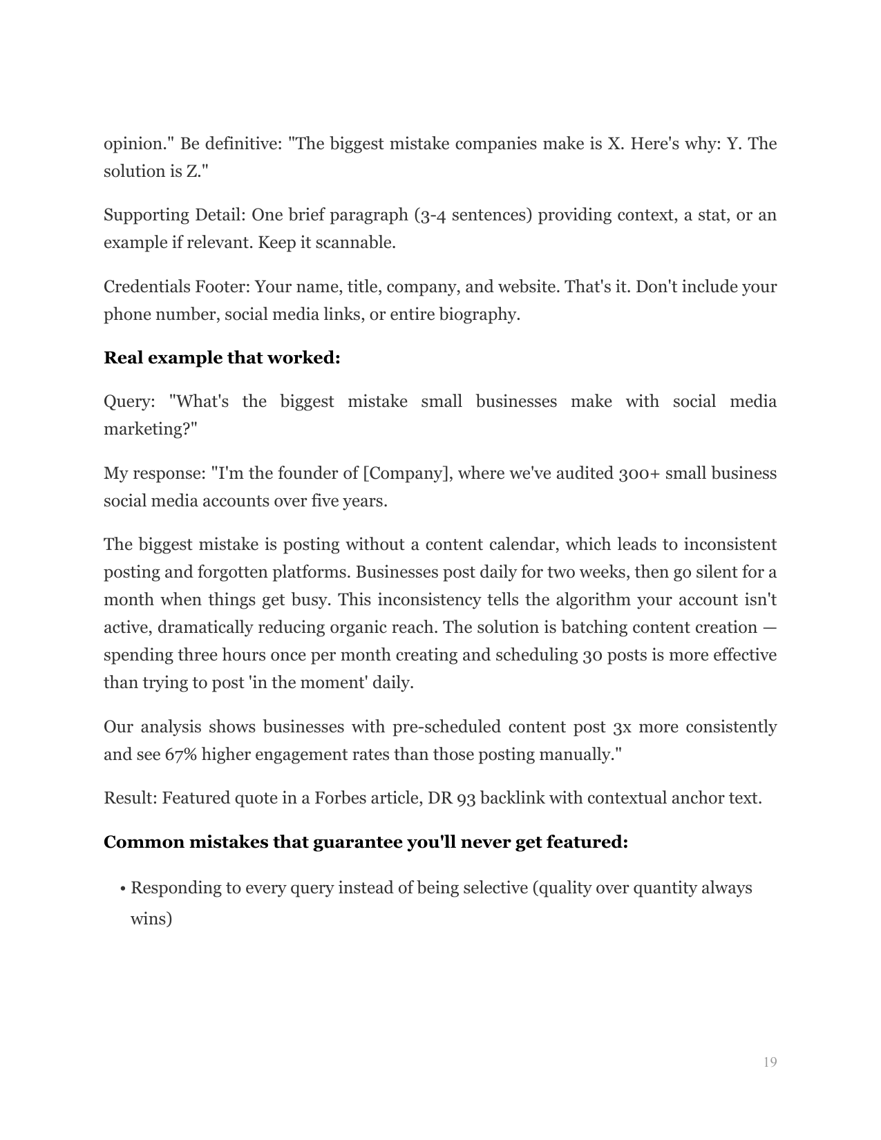 Build a systematic response system for HARO and similar platforms that secures 15-20 media mentions and backlinks monthly by positioning yourself as the expert journalists are actively seeking.