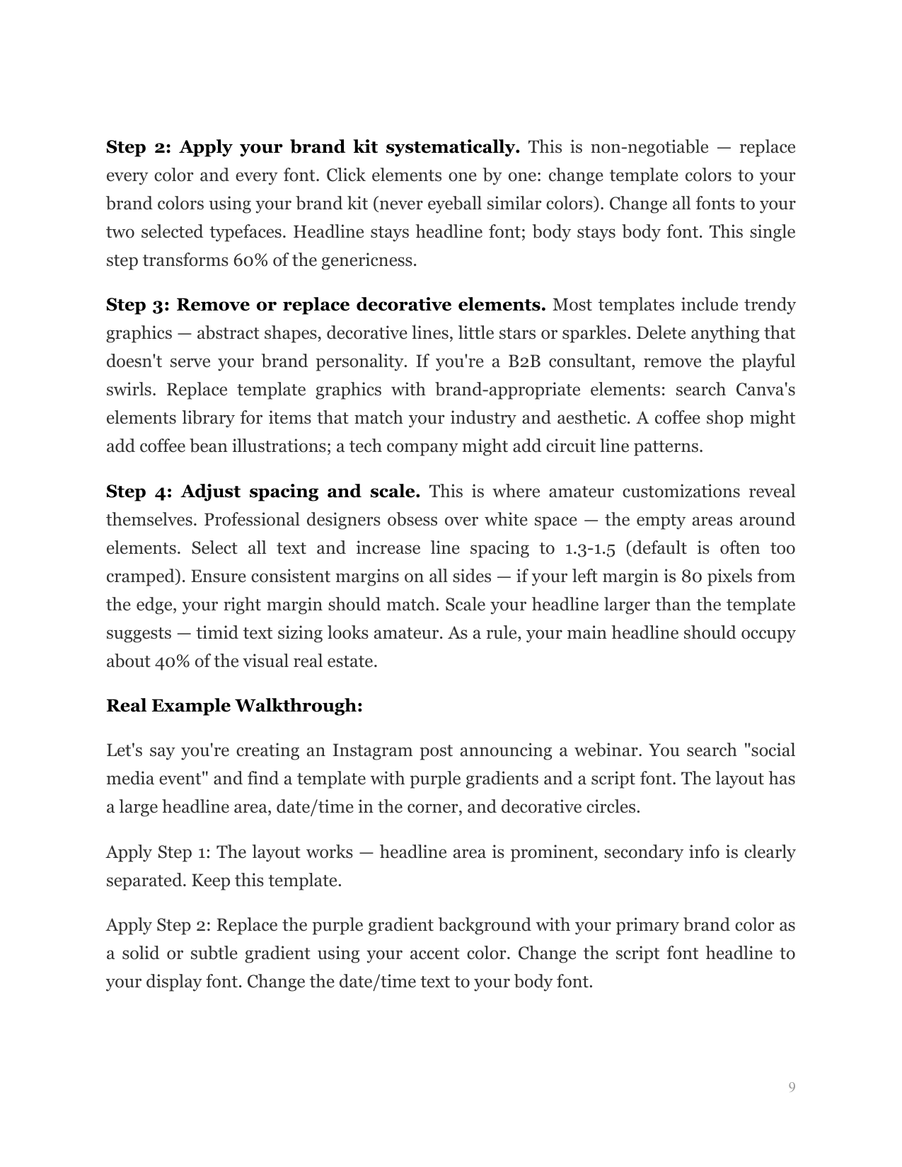 Transform generic Canva templates into custom-looking branded graphics using a repeatable four-step modification process.