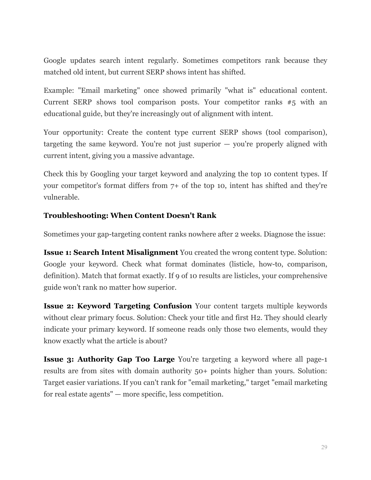 Identify why gap-targeting content fails to rank and deploy advanced techniques that work in ultra-competitive niches where basic strategies plateau.