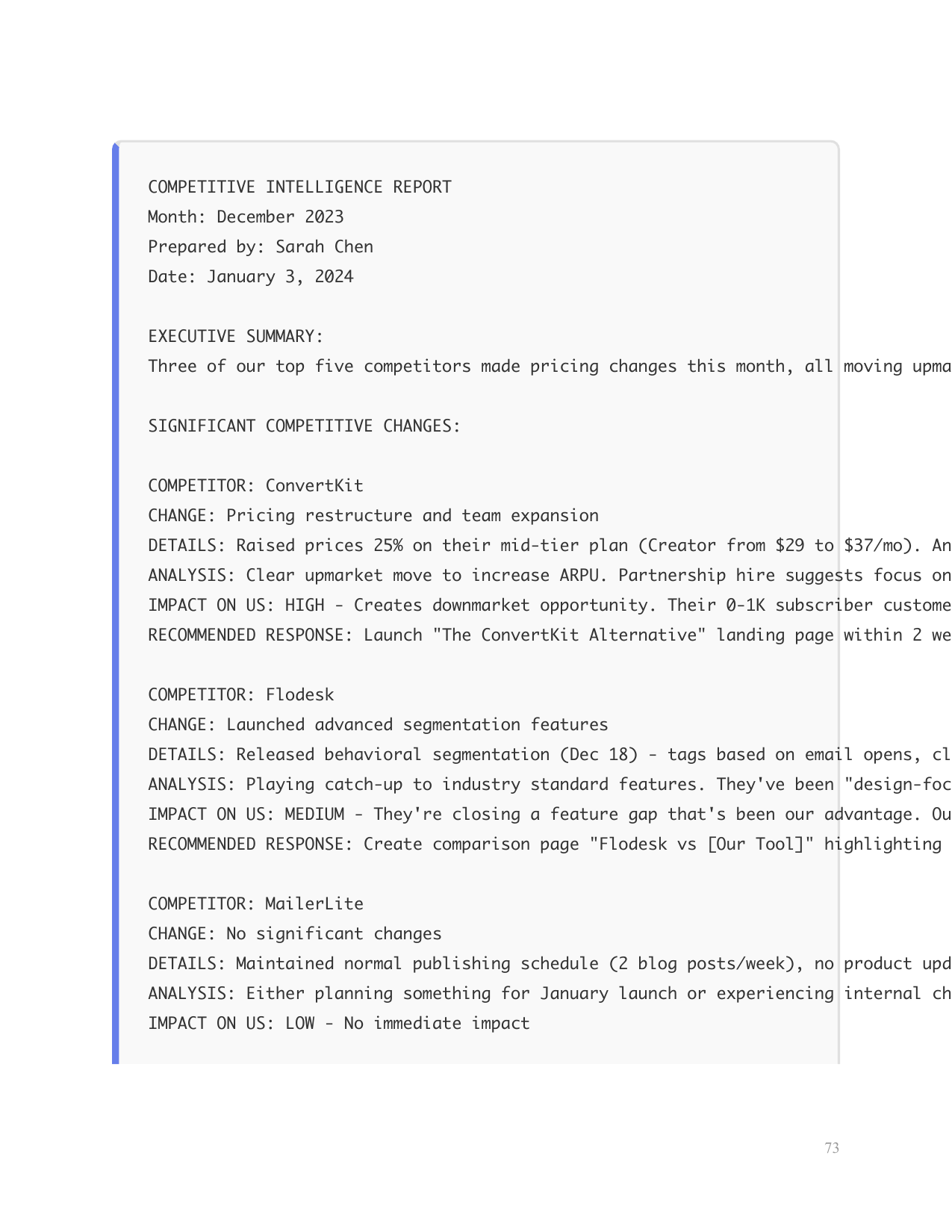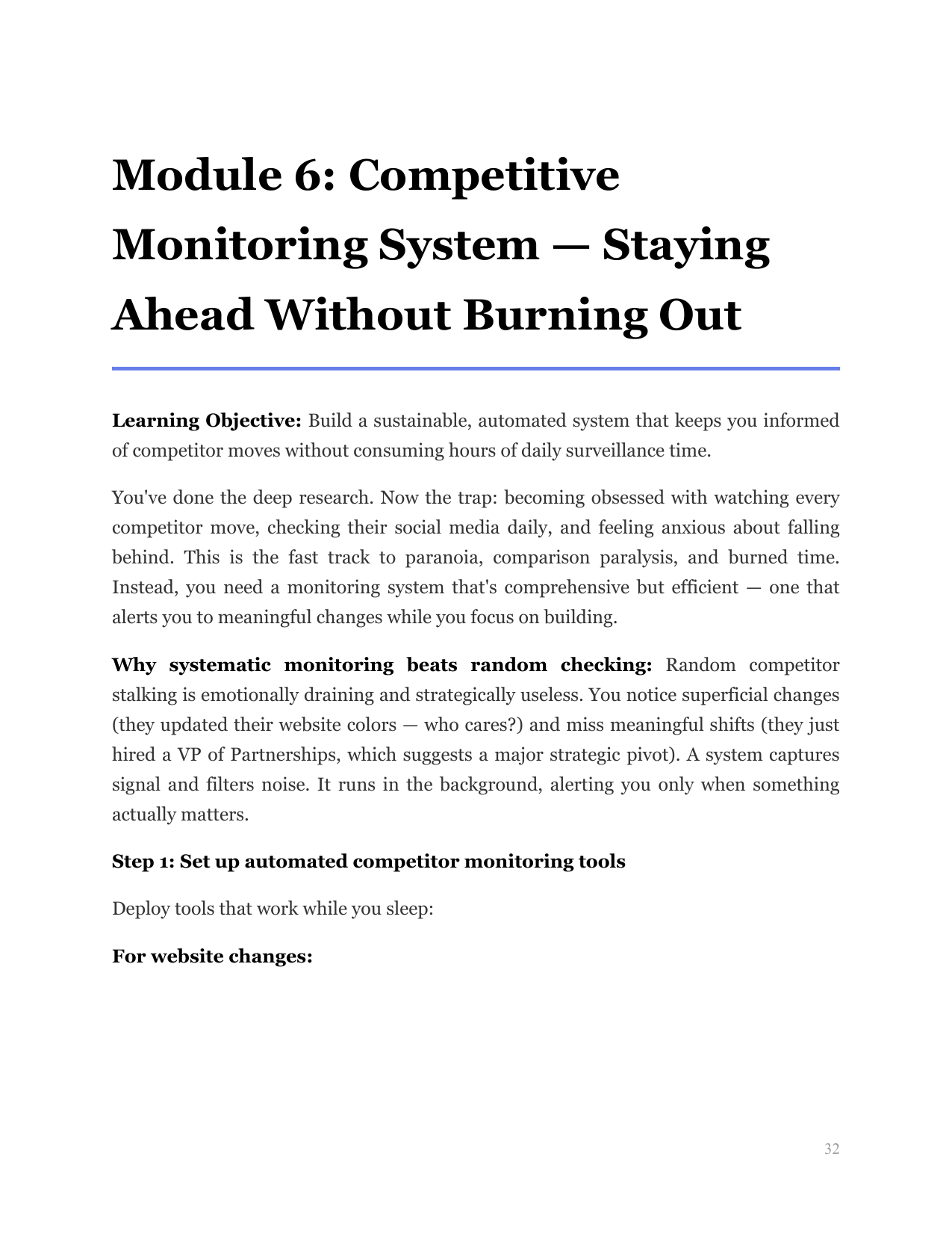 Build a sustainable, automated system that keeps you informed of competitor moves without consuming hours of daily surveillance time.
