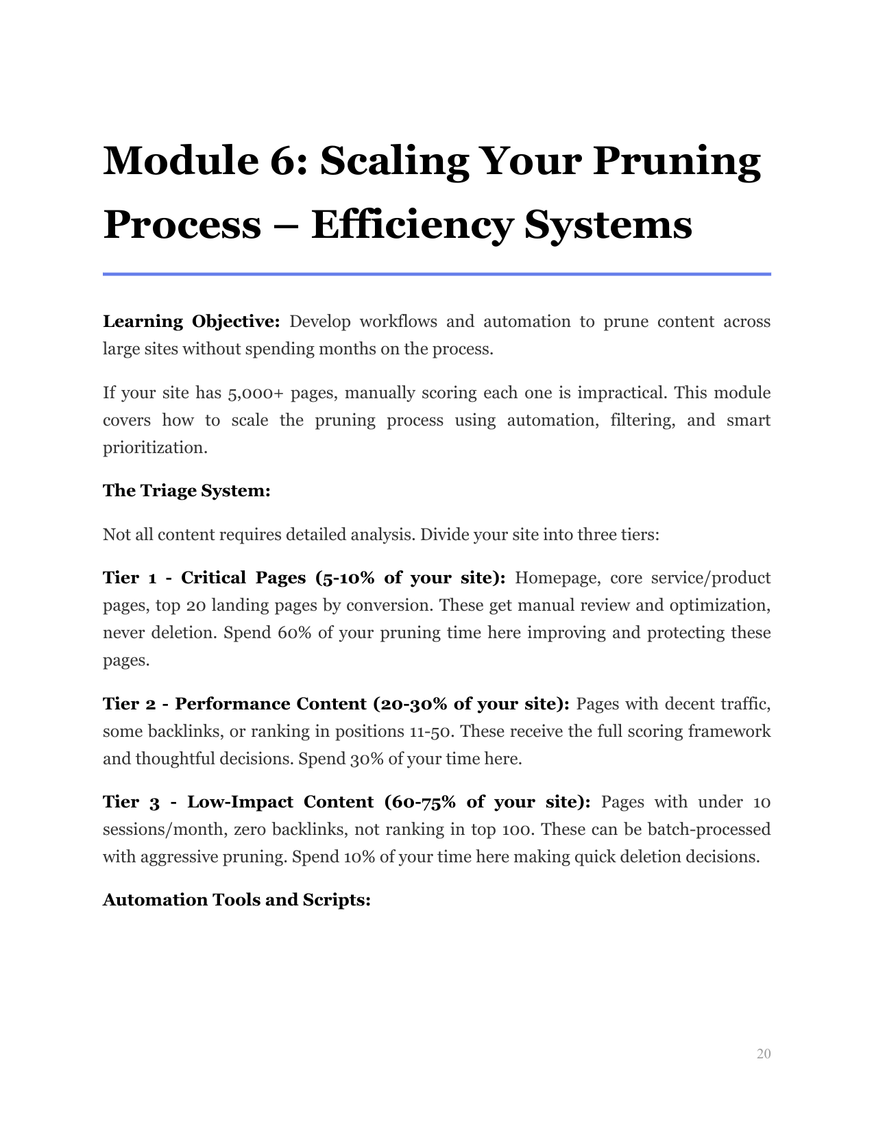 Develop workflows and automation to prune content across large sites without spending months on the process.