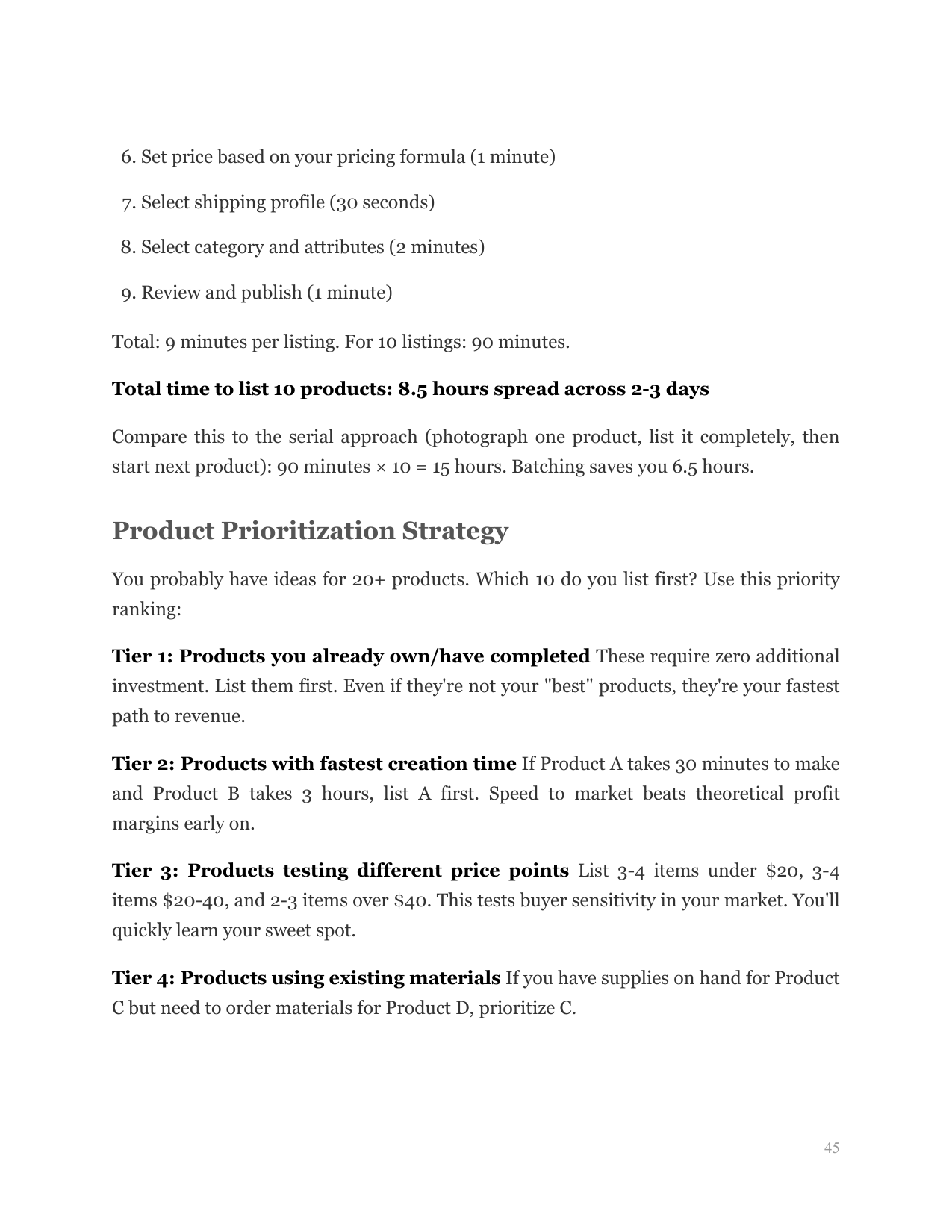 Develop a repeatable listing creation system that reduces time-per-listing from 90 minutes to 30 minutes, identify which products to prioritize next, and establish sustainable shop growth patterns that don't require 40-hour work weeks.
