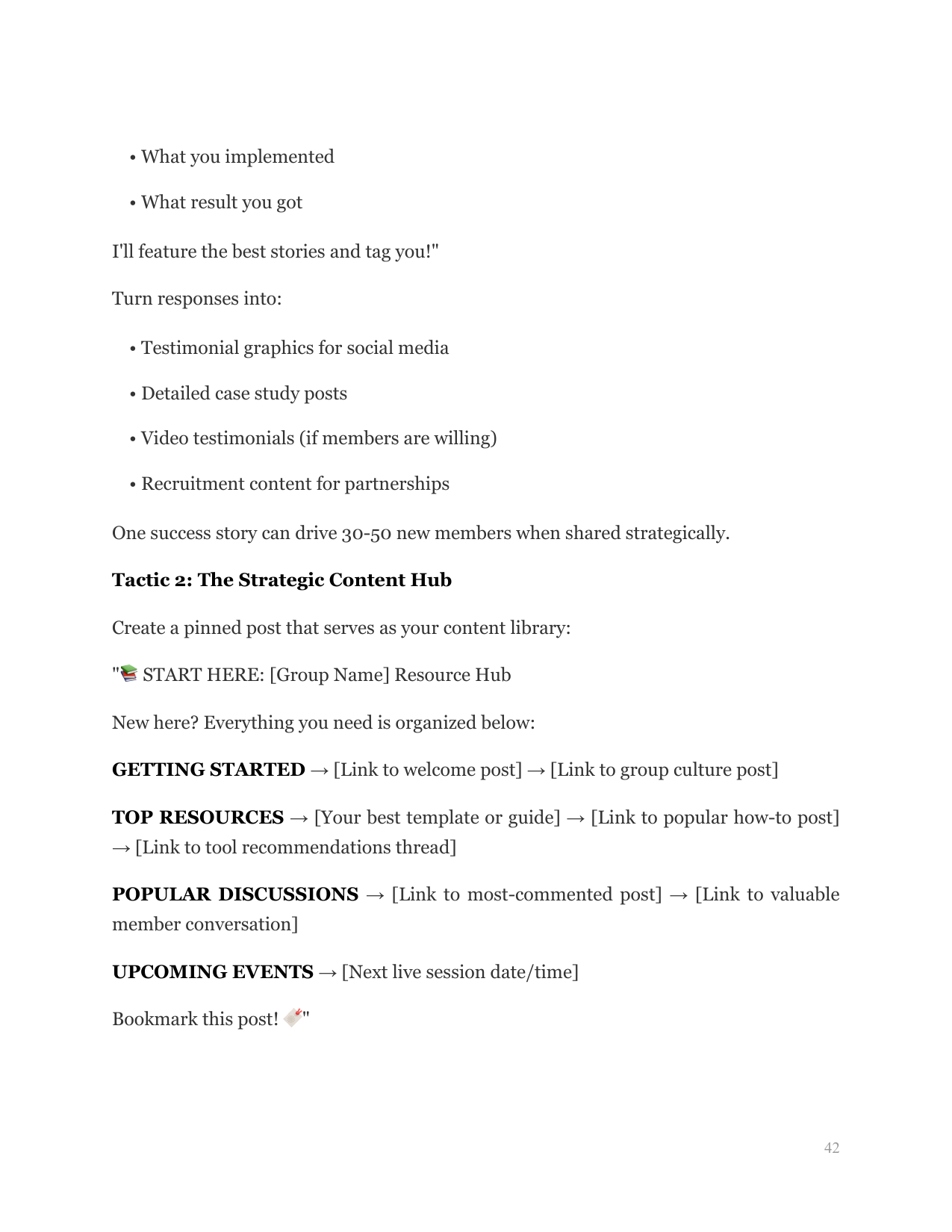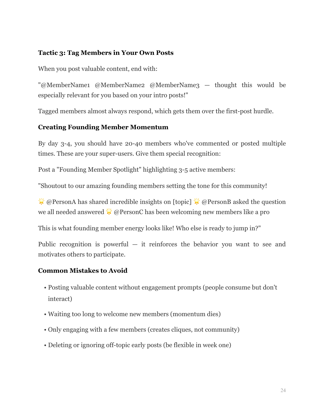 **Learning Objective**: Transform passive joiners into active participants using the founding member framework, generating the engagement that attracts organic growth and algorithmic promotion.