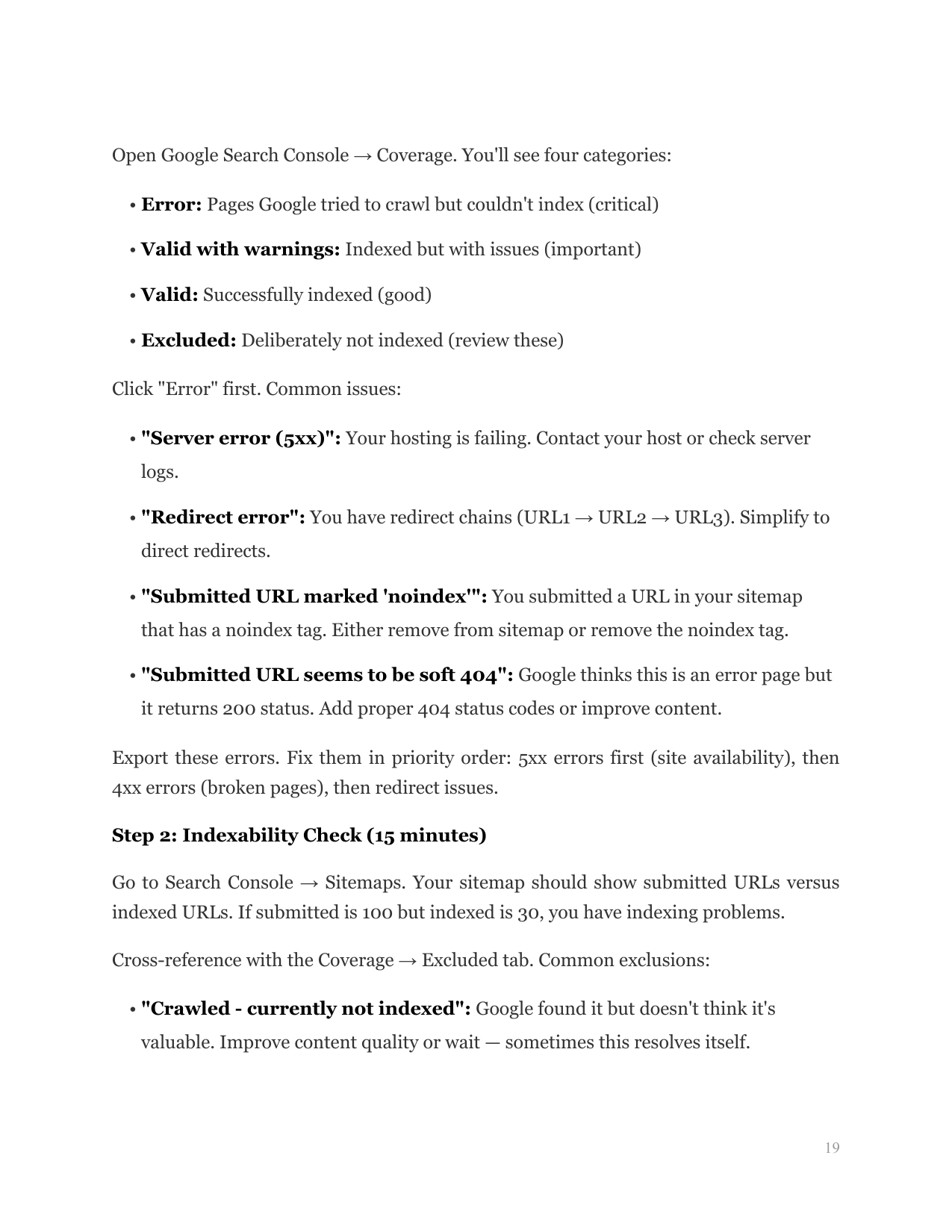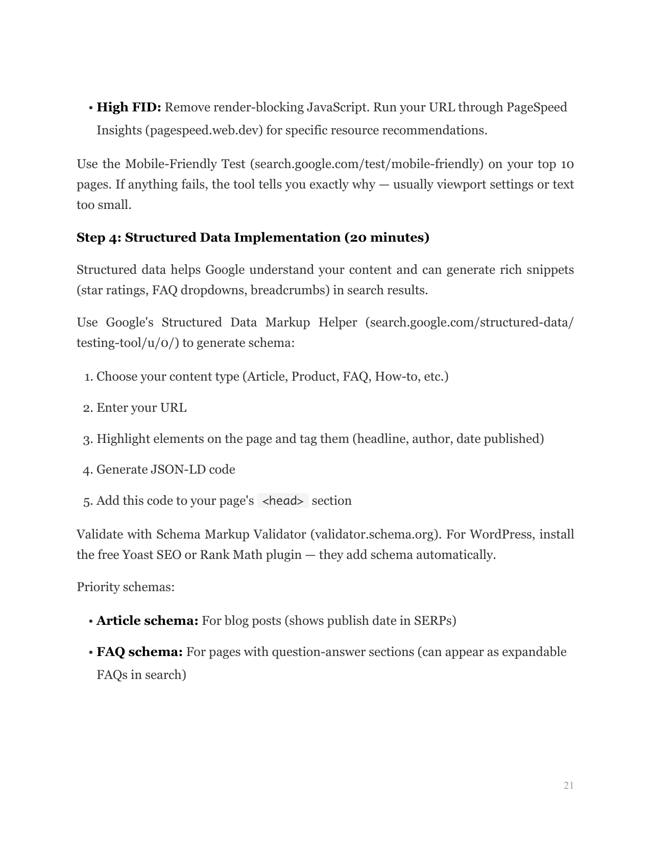 Identify and fix technical SEO issues that harm rankings using free tools, establishing ongoing monitoring that prevents problems before they impact traffic.