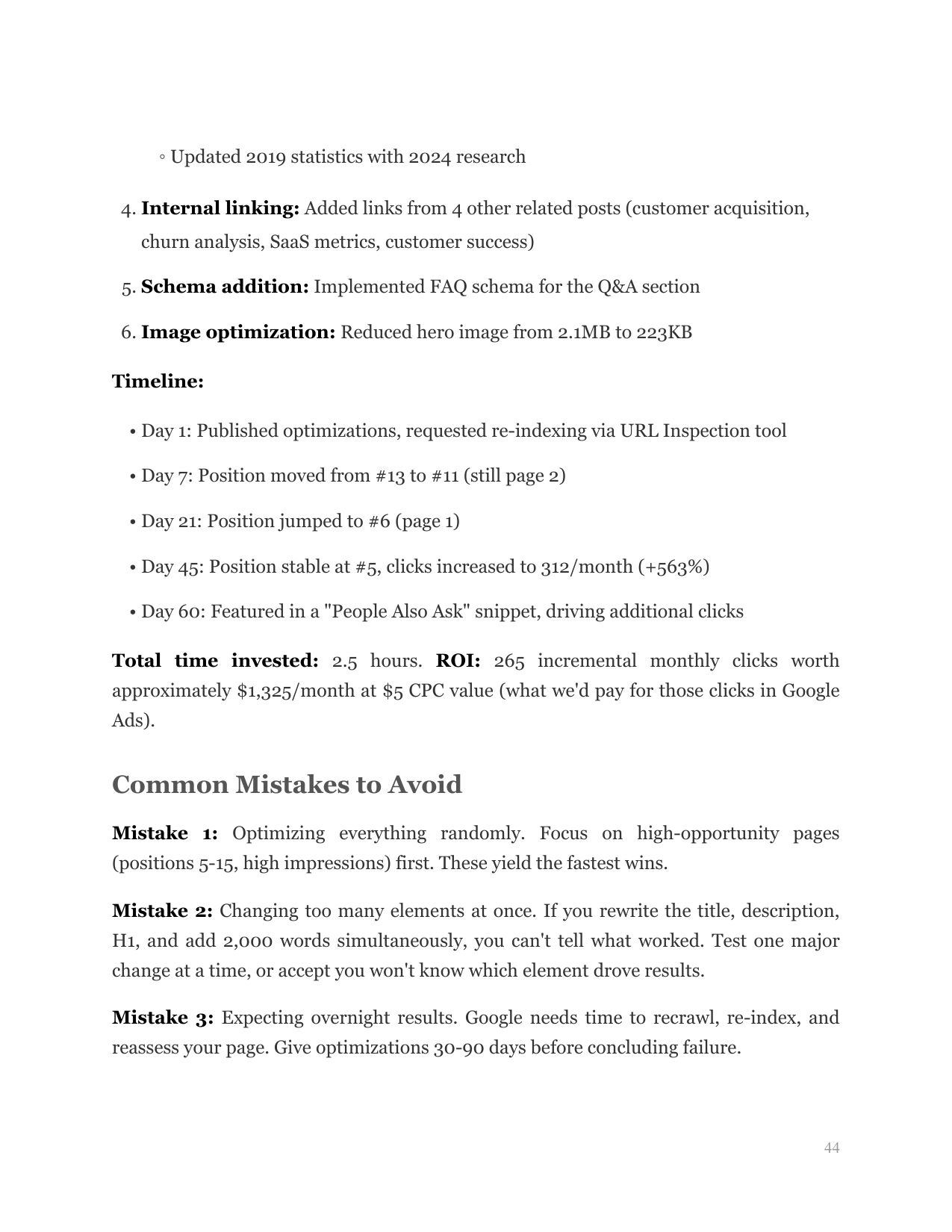 Transform existing content into ranking powerhouses using free optimization techniques, focusing on high-impact changes that move the rankings needle quickly.