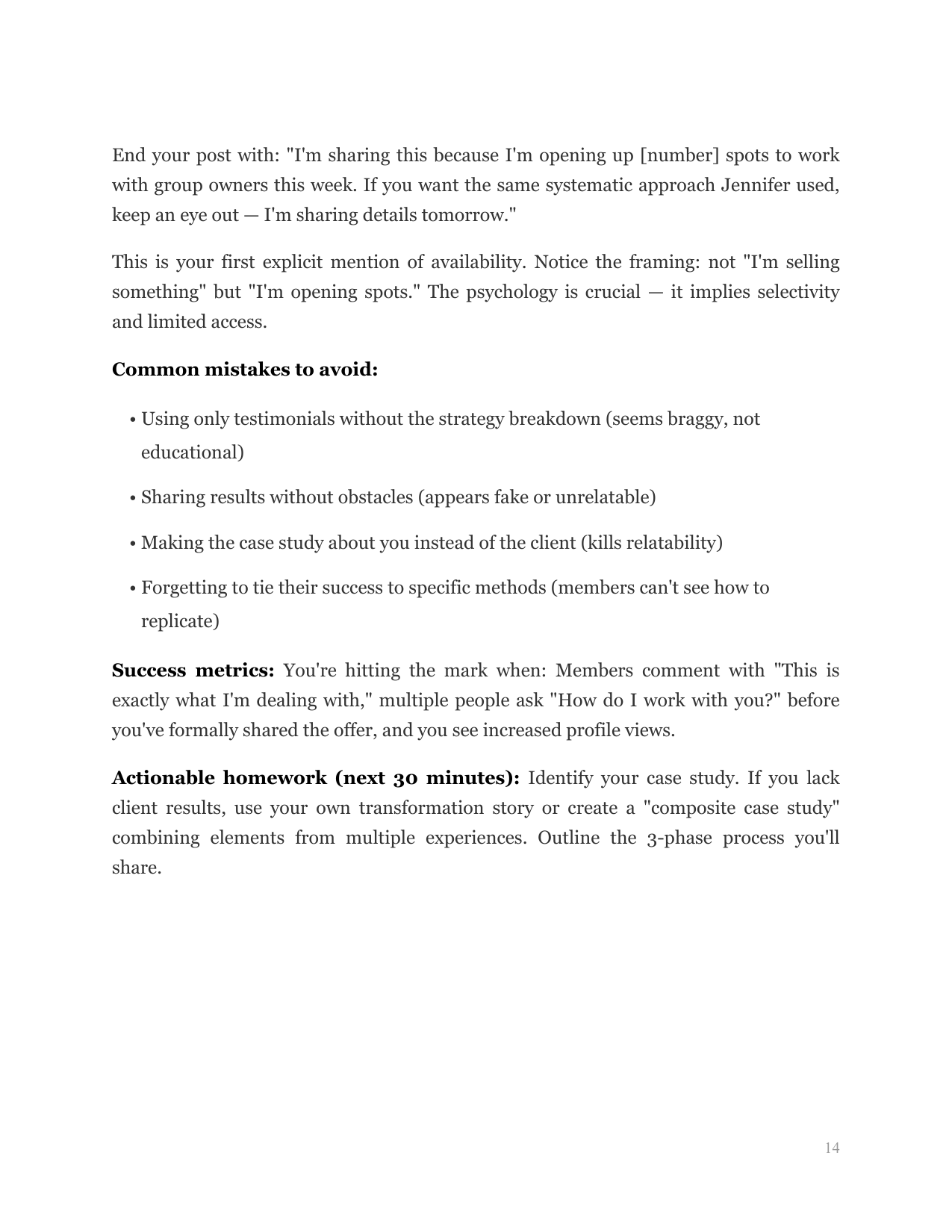 Leverage social proof and "case study teaching" to build credibility while demonstrating your methodology's effectiveness without overtly selling.