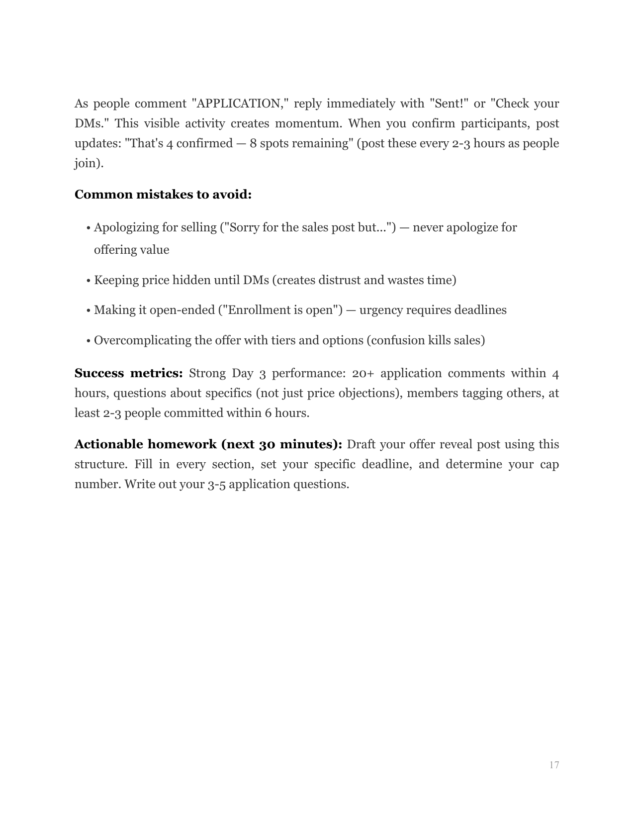 Present your offer using the "exclusive launch framework" that leverages community FOMO and social proof to accelerate decision-making.