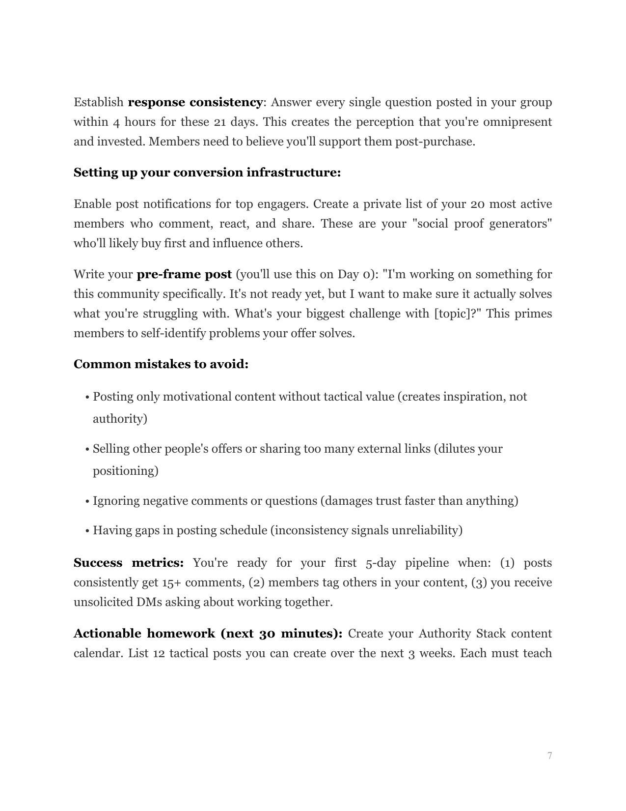 Deliver concentrated free value that naturally reveals the gap your paid offer fills, while priming members for the buying window.