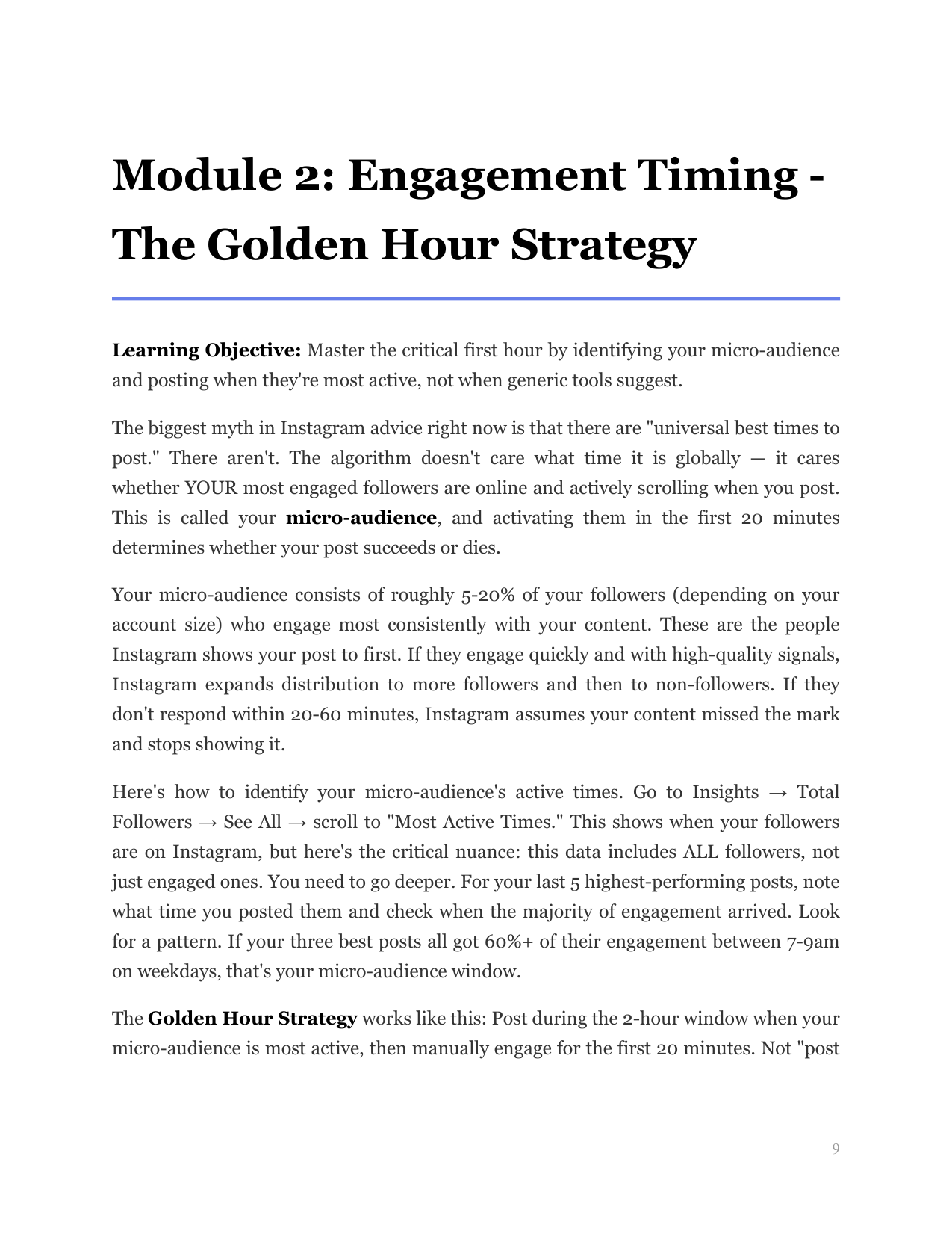 Master the critical first hour by identifying your micro-audience and posting when they're most active, not when generic tools suggest.