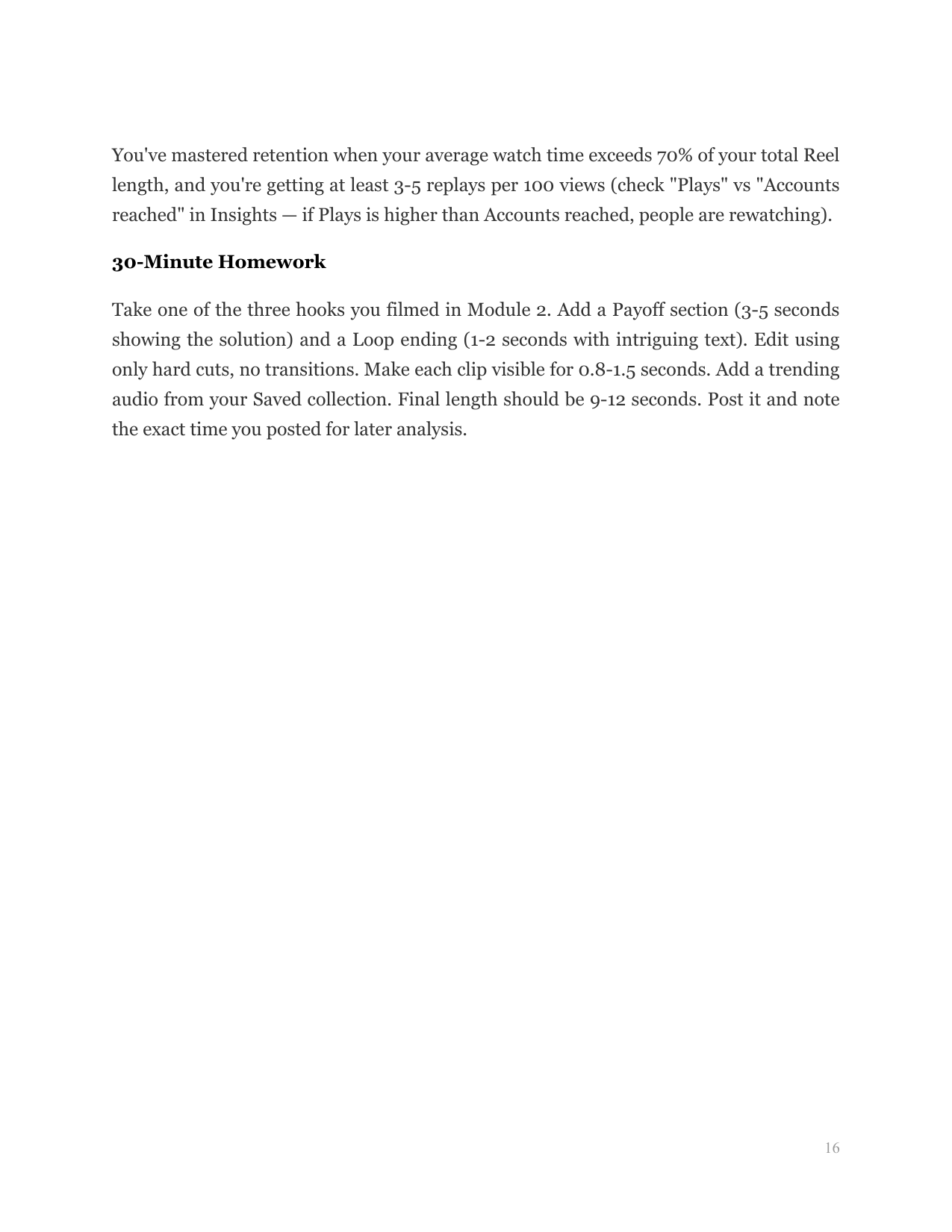 Structure your Reel's middle and end sections to maintain attention and maximize completion rate, the single most important metric for algorithmic distribution.