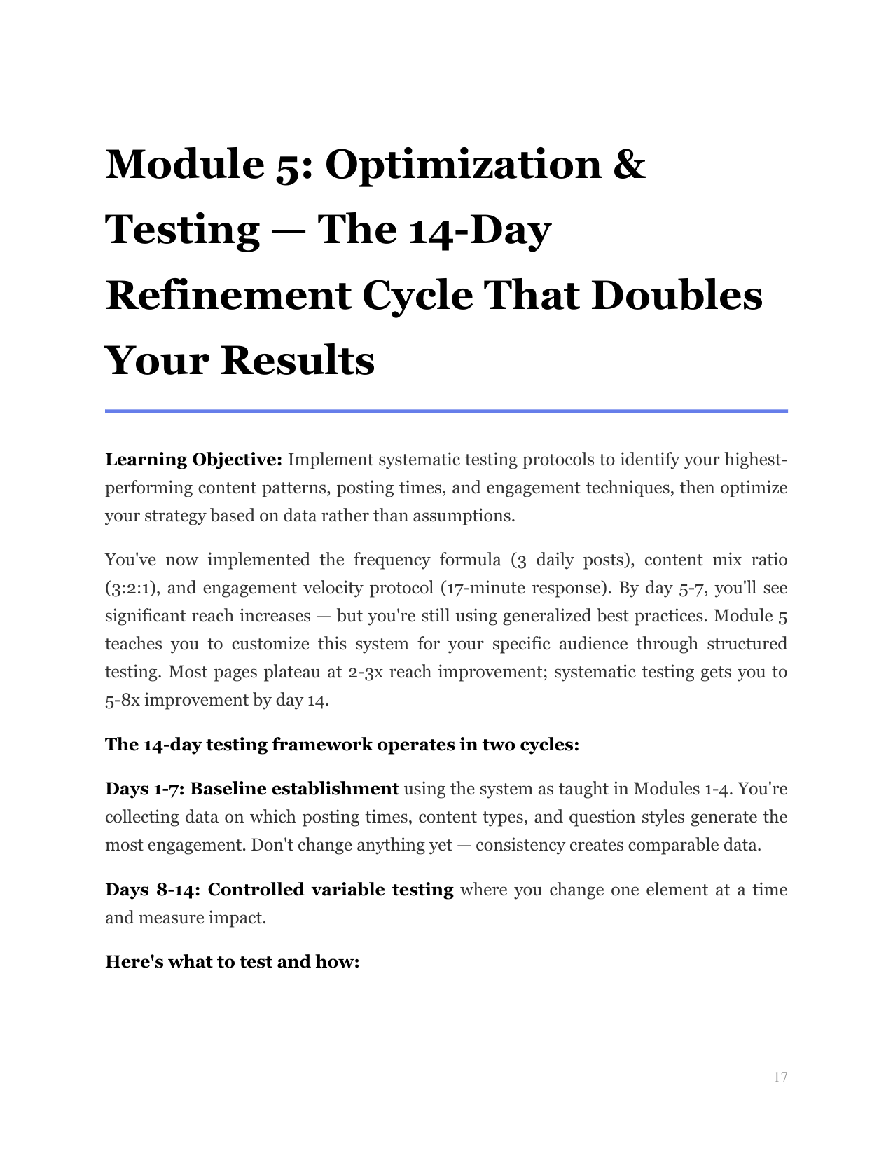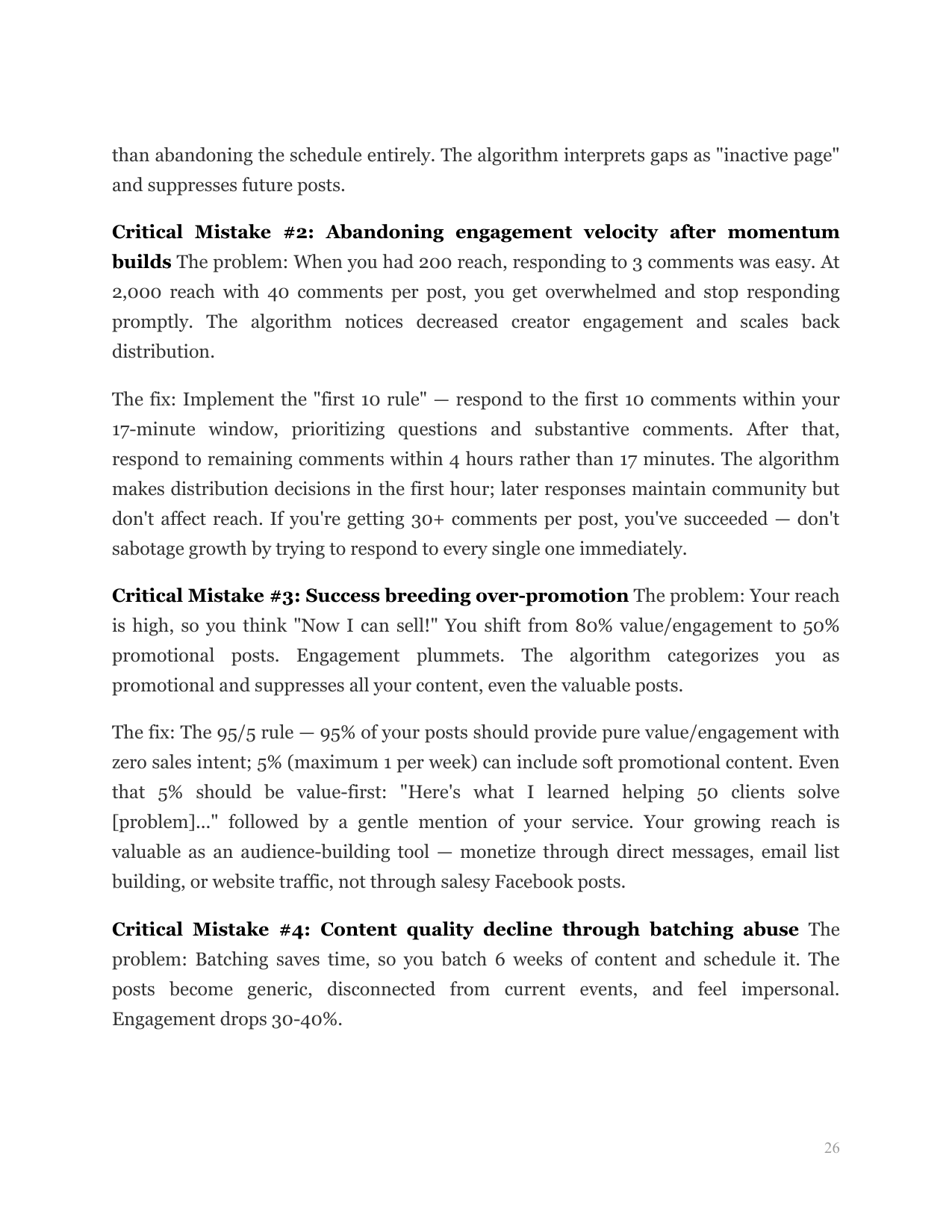 ๐๐ฒ๐ฎ๐ฟ๐ป๐ถ๐ป๐ด ๐ข๐ฏ๐ท๐ฒ๐ฐ๐๐ถ๐๐ฒ: Identify and prevent the five critical mistakes that cause pages to revert to low reach after initial success, plus implement advanced techniques that maintain growth momentum through months 2-3 and beyond.