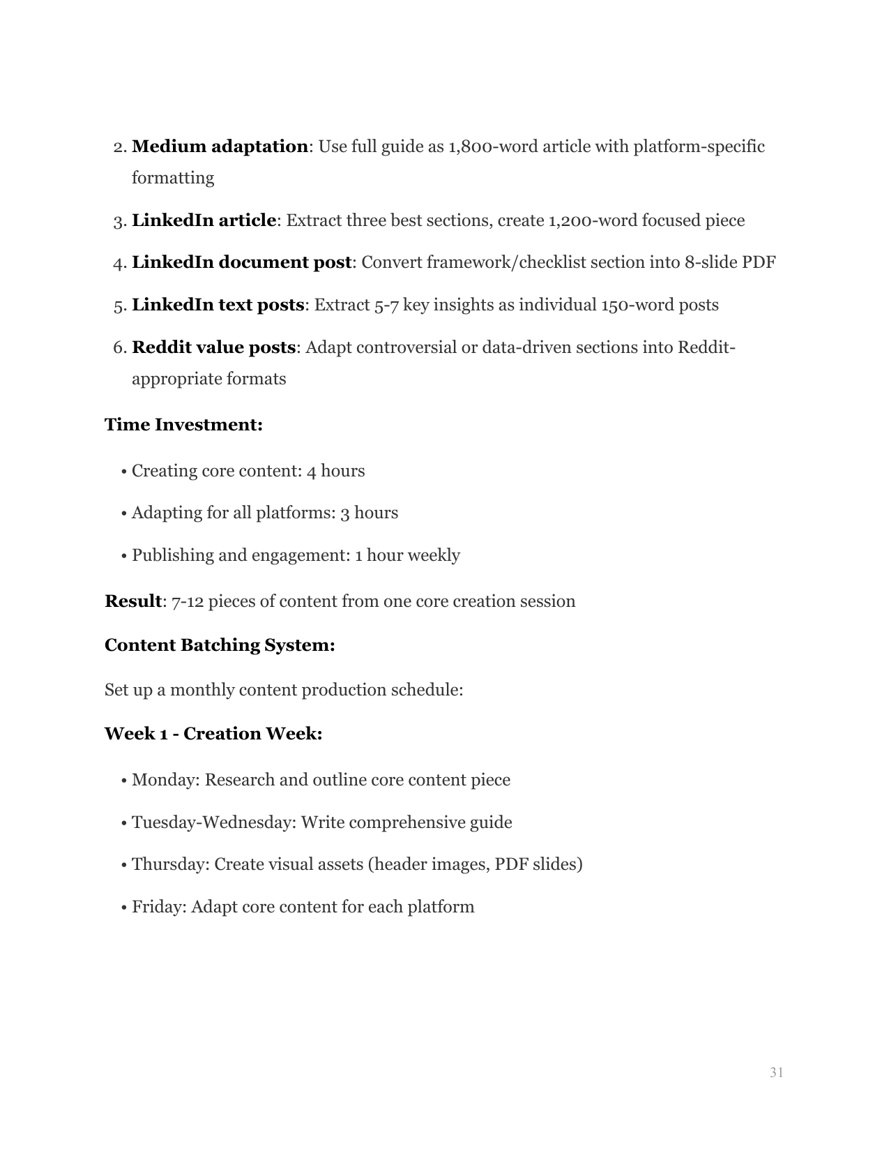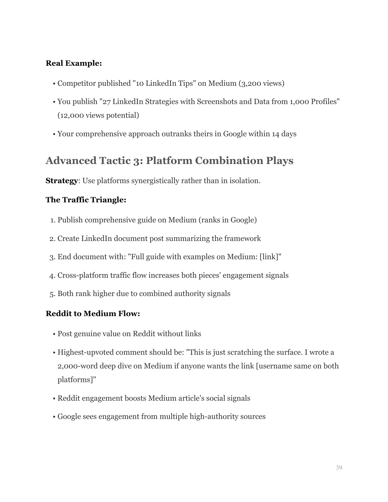 Leverages high-authority platforms. Teaches profile optimization, content repurposing for discovery, and link-back strategies that drive traffic while building domain authority.