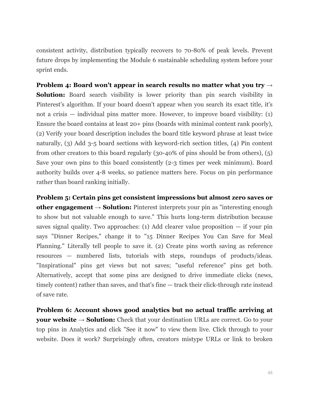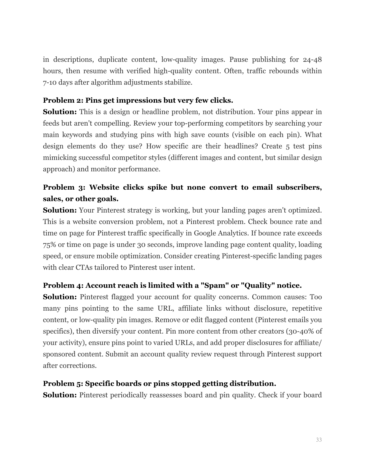 Diagnose and fix common Pinterest traffic problems, implement advanced strategies for accounts ready to scale beyond 1,000 clicks, and avoid account quality issues that limit reach.