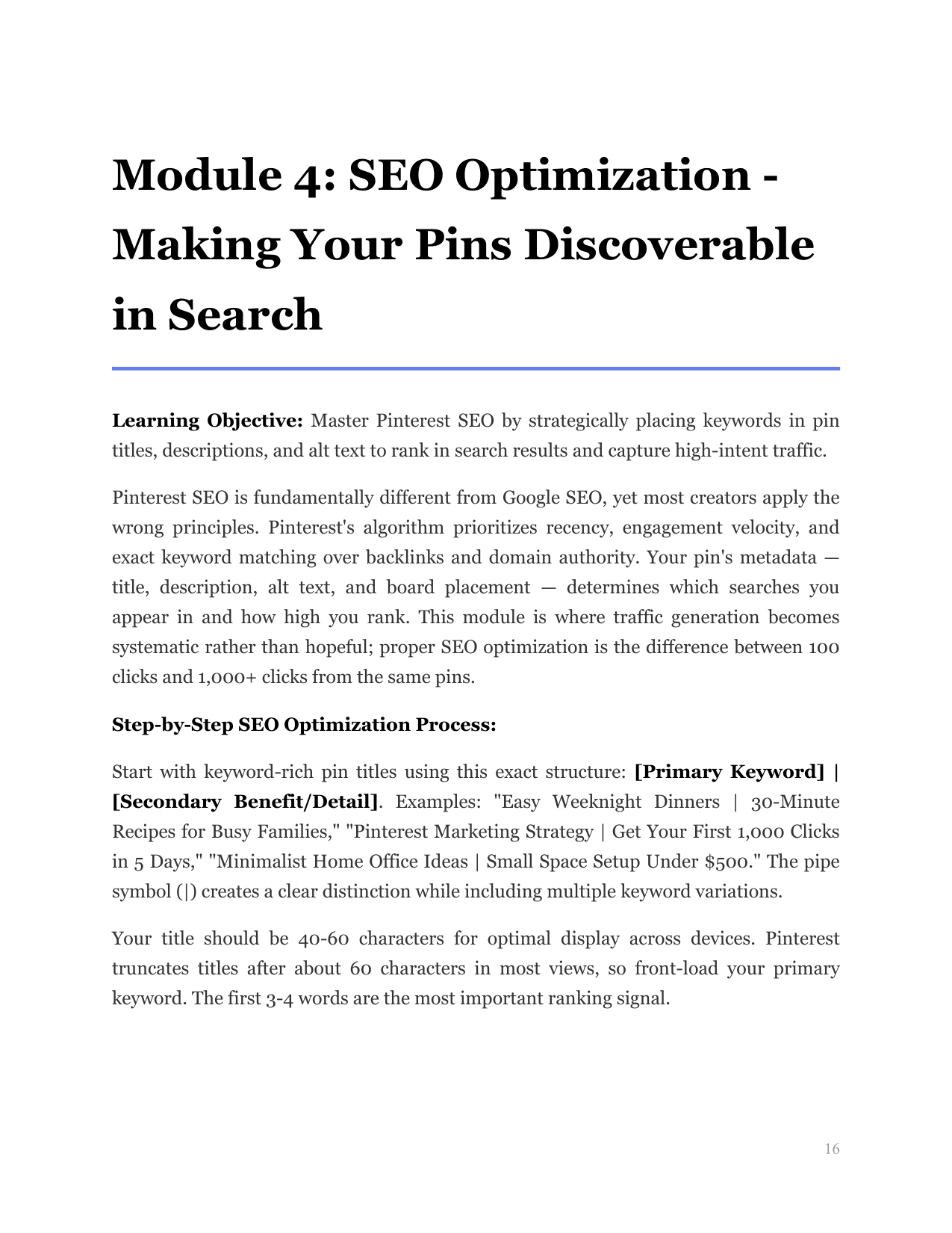Teaches pin design basics, SEO keyword placement, and board organization for immediate results.