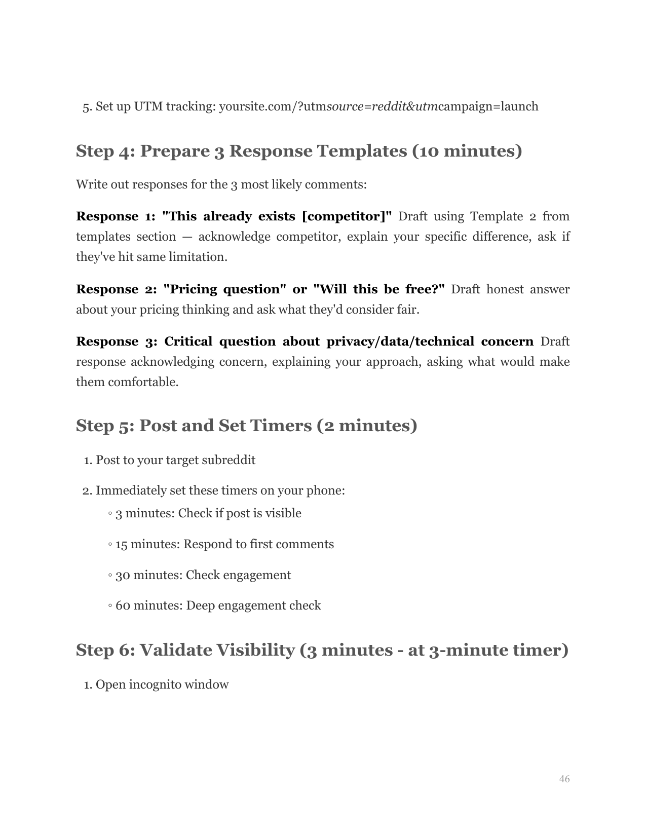 Cracks Reddit for product validation and sales. Covers subreddit research, launch post structure, the 'feedback-first' approach, timing optimization, and handling skeptical comments that builds trust not backlash.