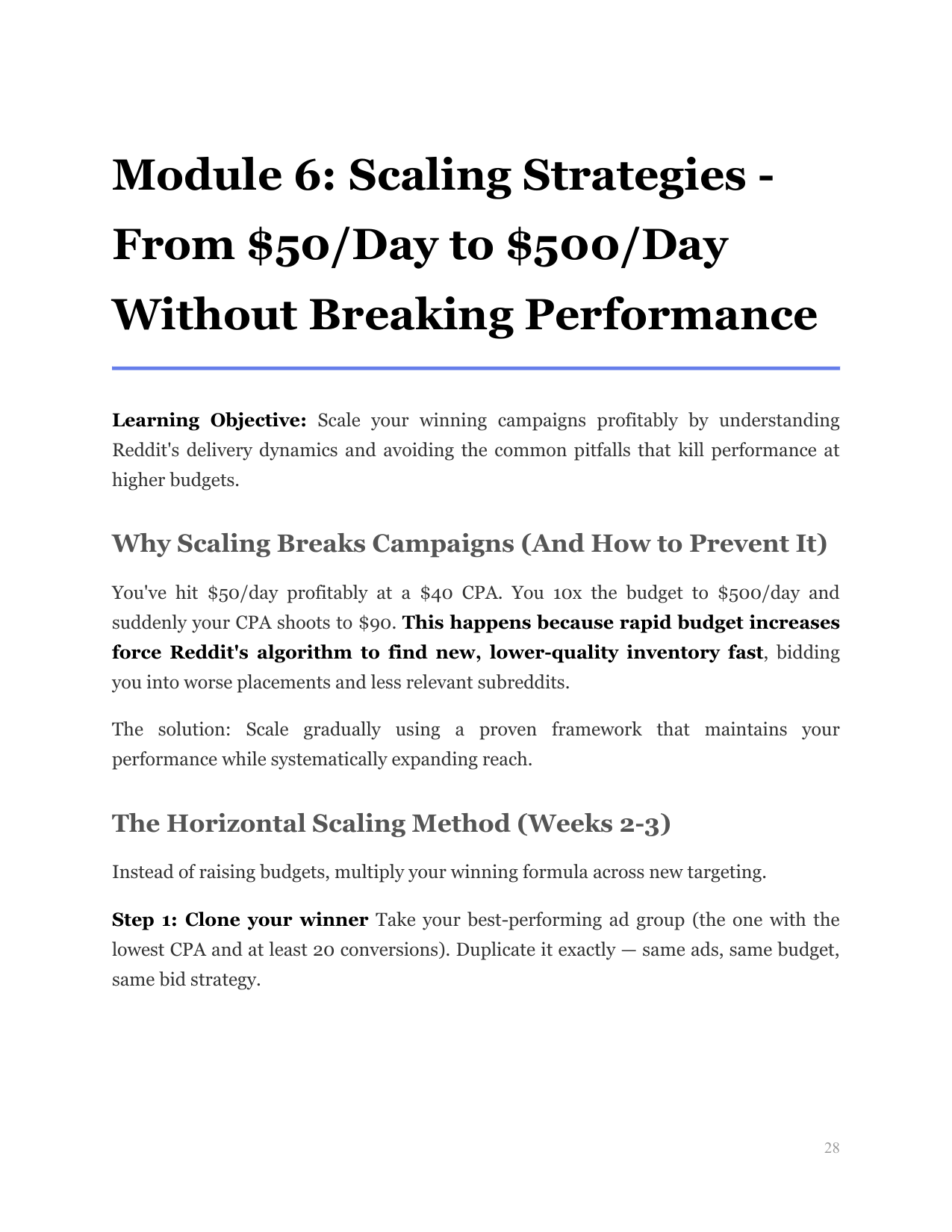 Scale your winning campaigns profitably by understanding Reddit's delivery dynamics and avoiding the common pitfalls that kill performance at higher budgets.