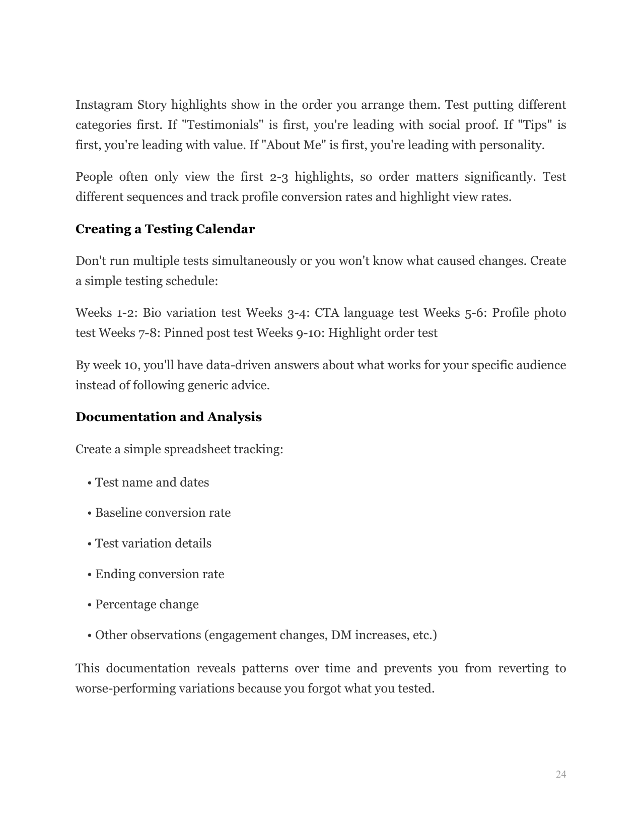 Implement systematic testing to identify which profile elements impact your follow rate most, then optimize them for measurable improvement using data instead of guessing.