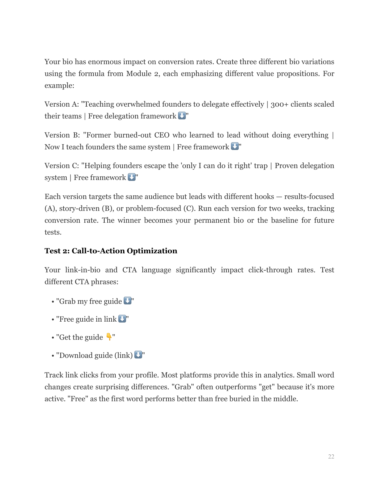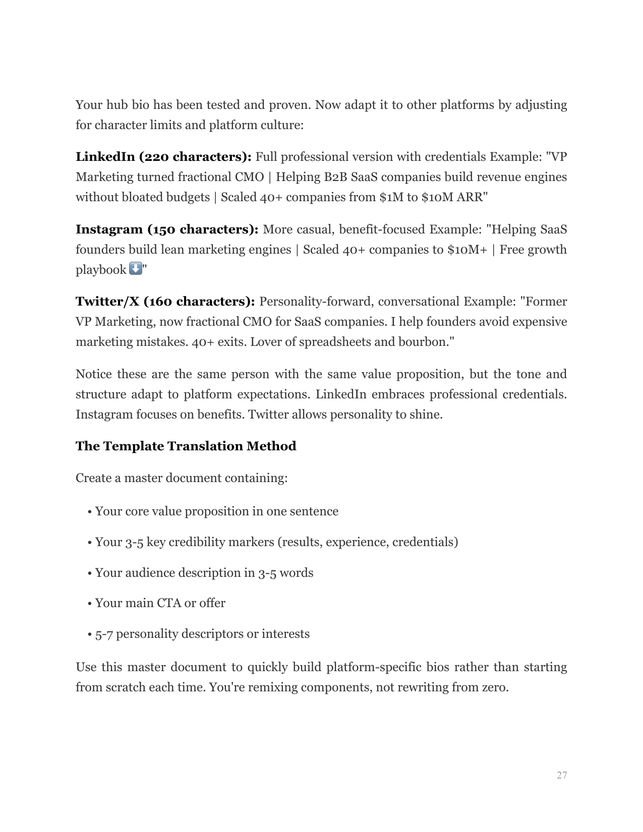 Craft a bio that instantly communicates your value proposition and compels your ideal audience to follow using a proven structural formula.