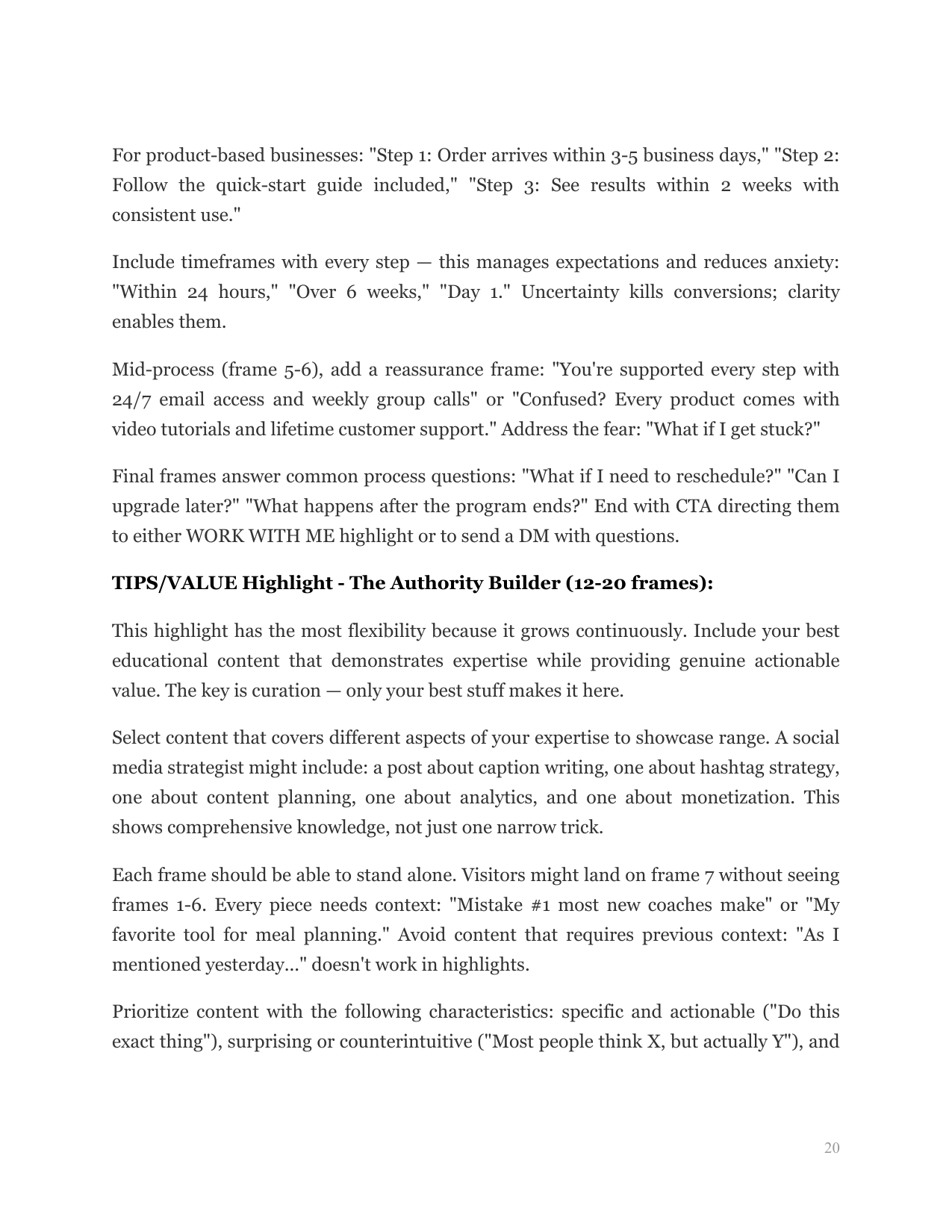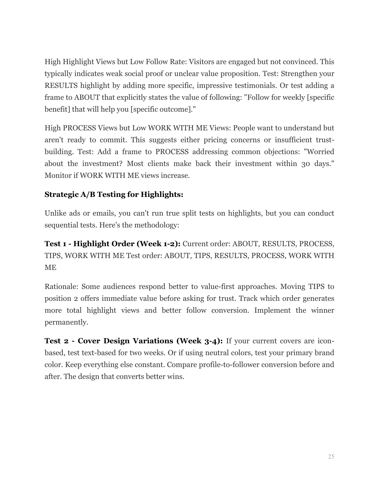Master the exact highlight categories that guide visitors from curiosity to conversion, and understand the psychological sequencing that makes this structure work.