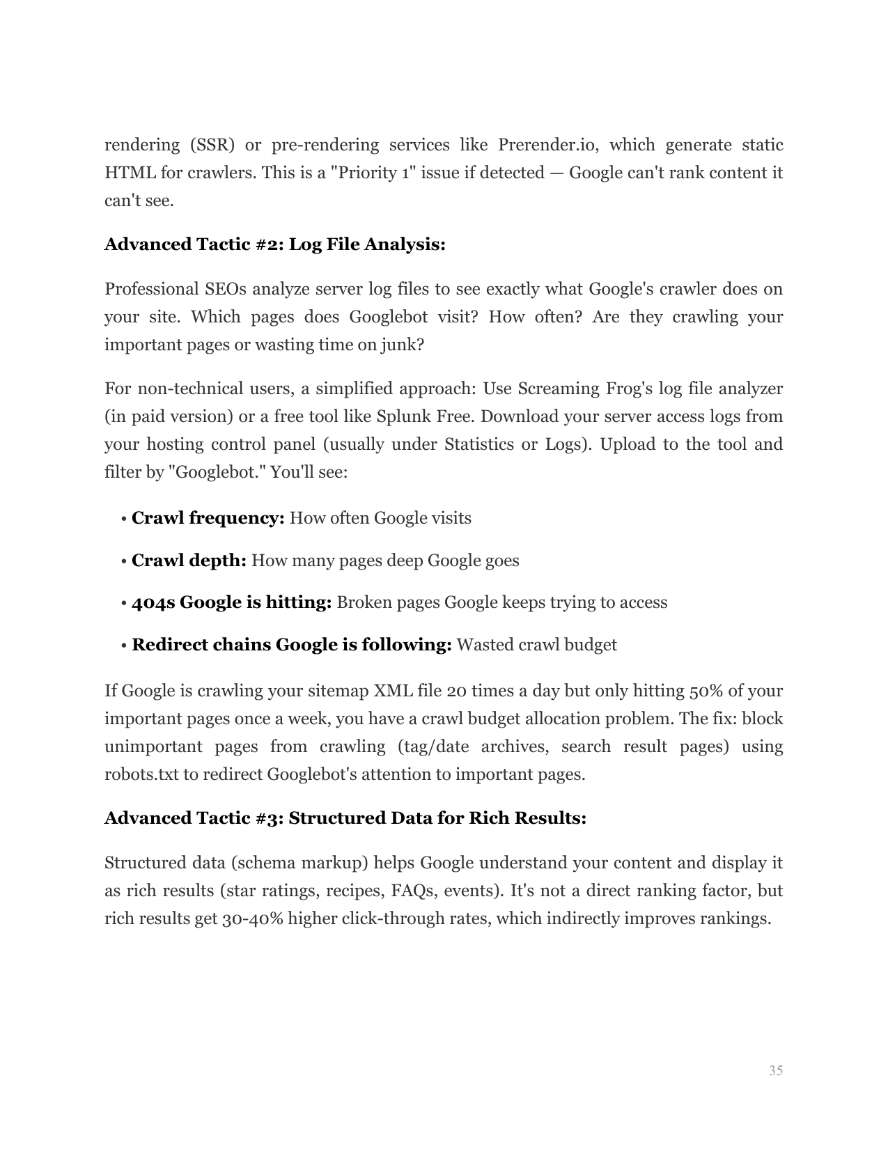 Understand advanced technical SEO concepts that separate good audits from great ones, learn to troubleshoot persistent problems, recognize when to stop optimizing, and avoid the critical mistakes that sabotage even well-executed audits.