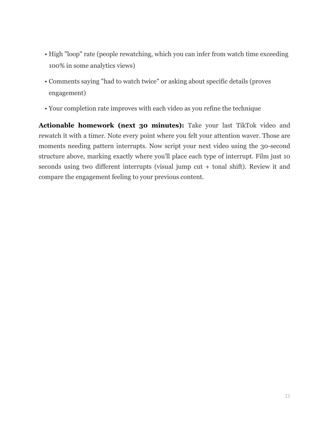 Deploy strategic "scroll-breakers" every 3-5 seconds that psychologically compel viewers to watch until the end, triggering TikTok's most powerful algorithmic boost.