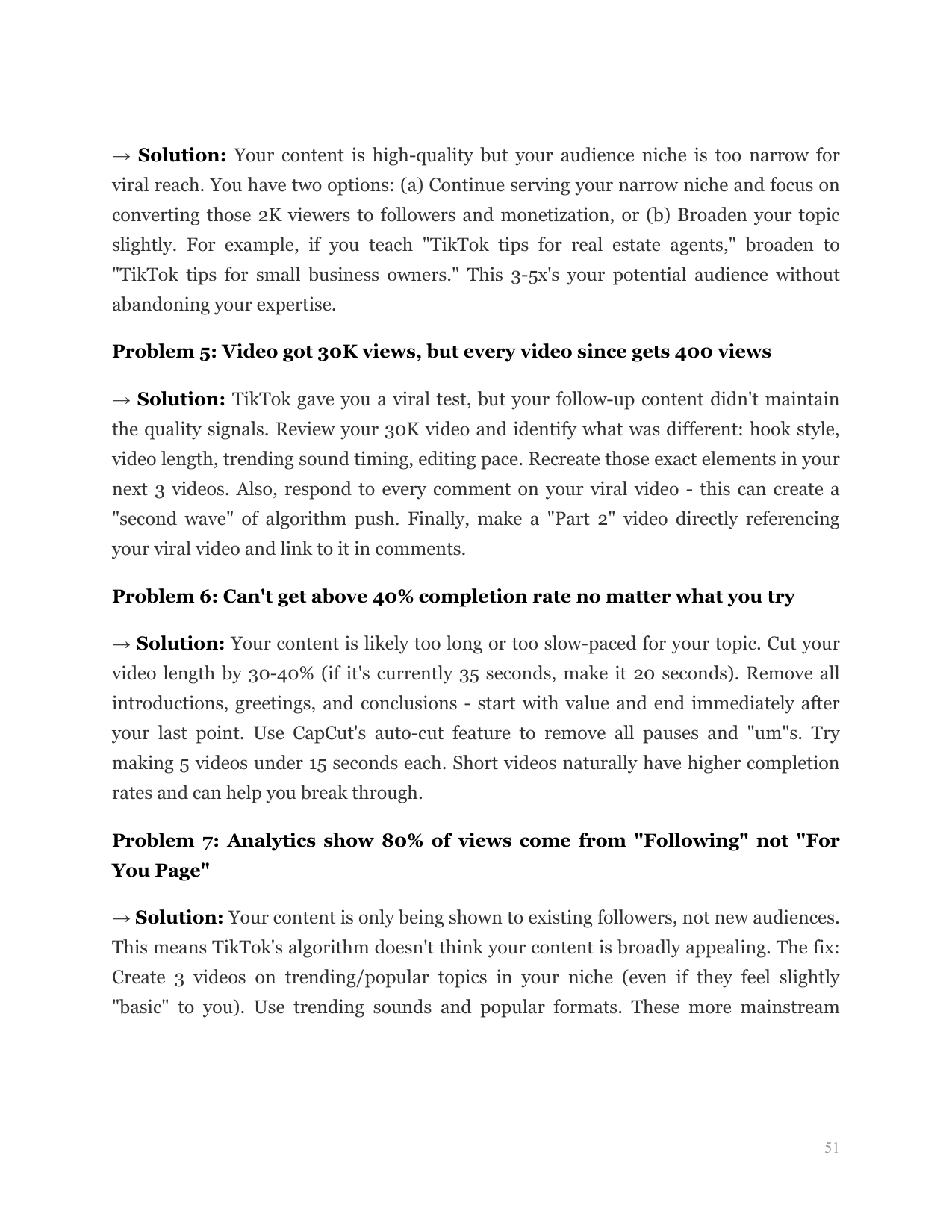 Diagnose why videos underperform, recover from algorithmic suppression, and deploy advanced growth techniques that separate viral creators from those stuck at low-to-mid performance.