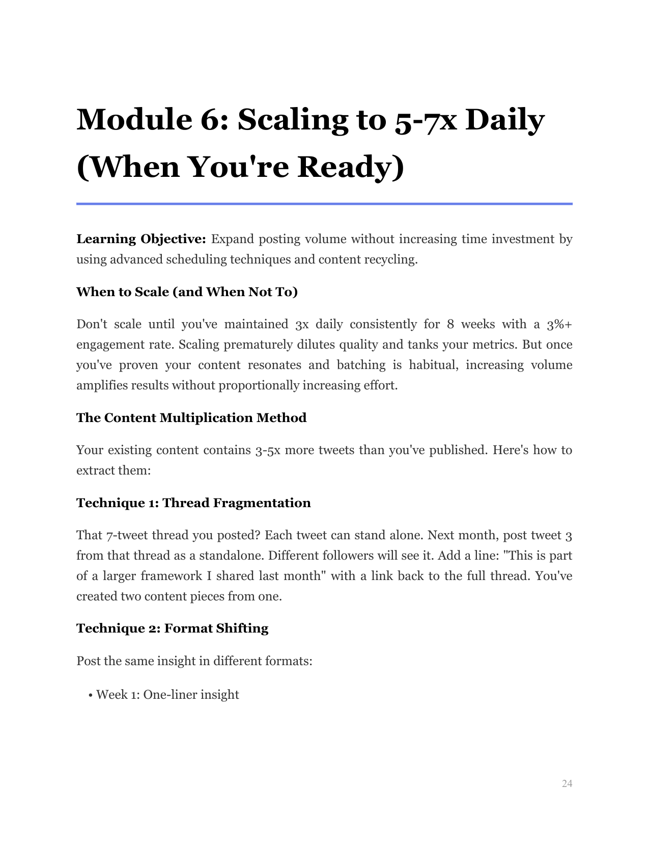 Master the weekly content creation session that produces 21 tweets in 90 minutes.